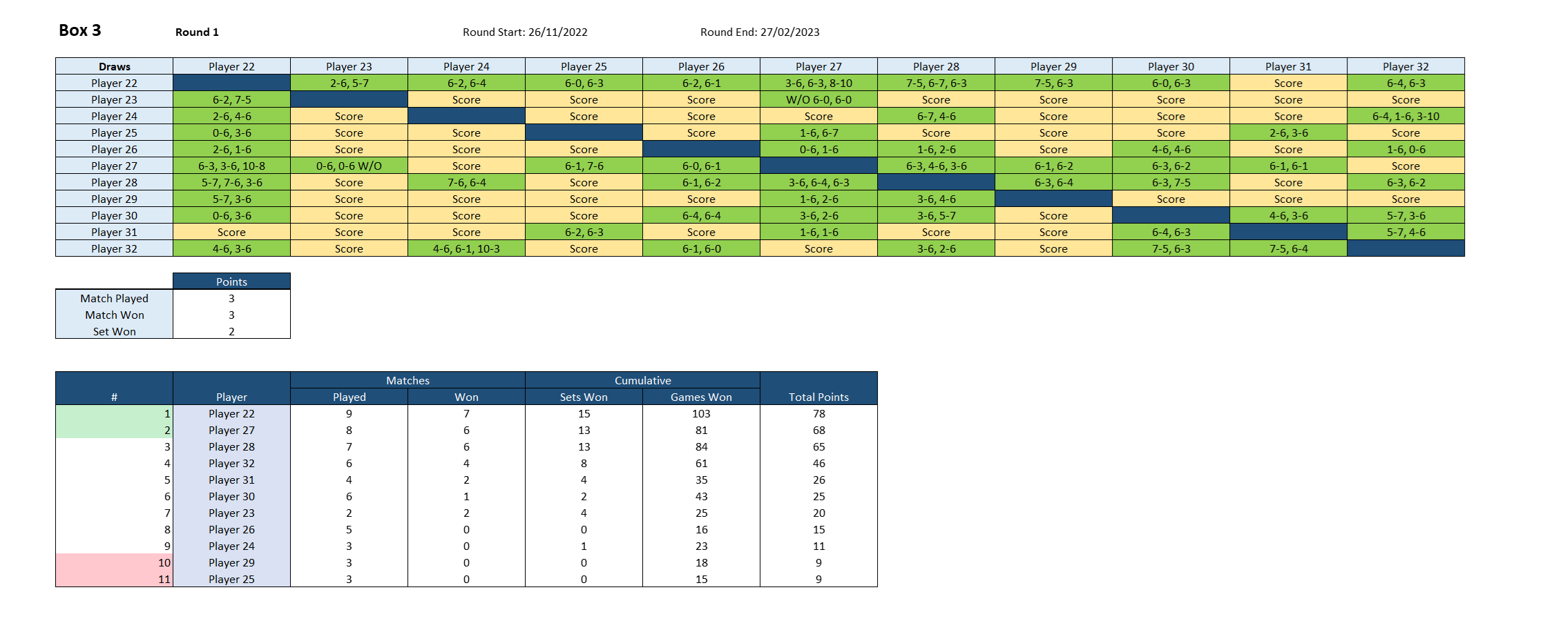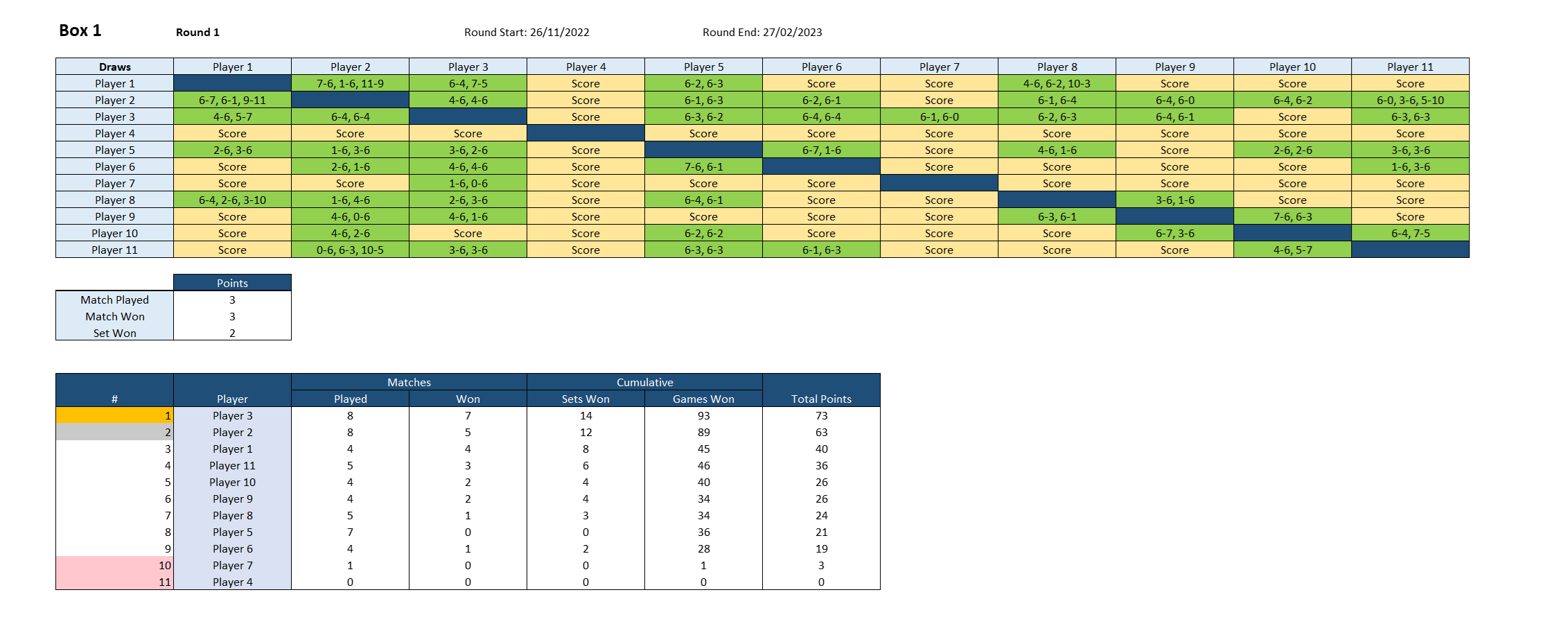 Example Box League – Singles